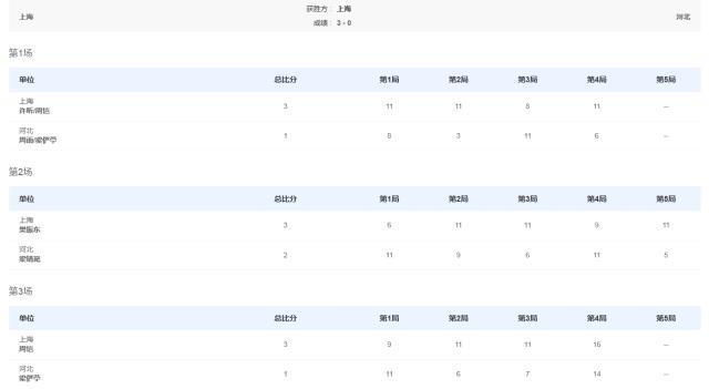11月18日,第十五届宇宙畅通会乒乓球表情继续进行。在刚刚截至的一场须眉团体1/4决赛中,上海队以3比0的总比分驯顺河北队,晋级4强!